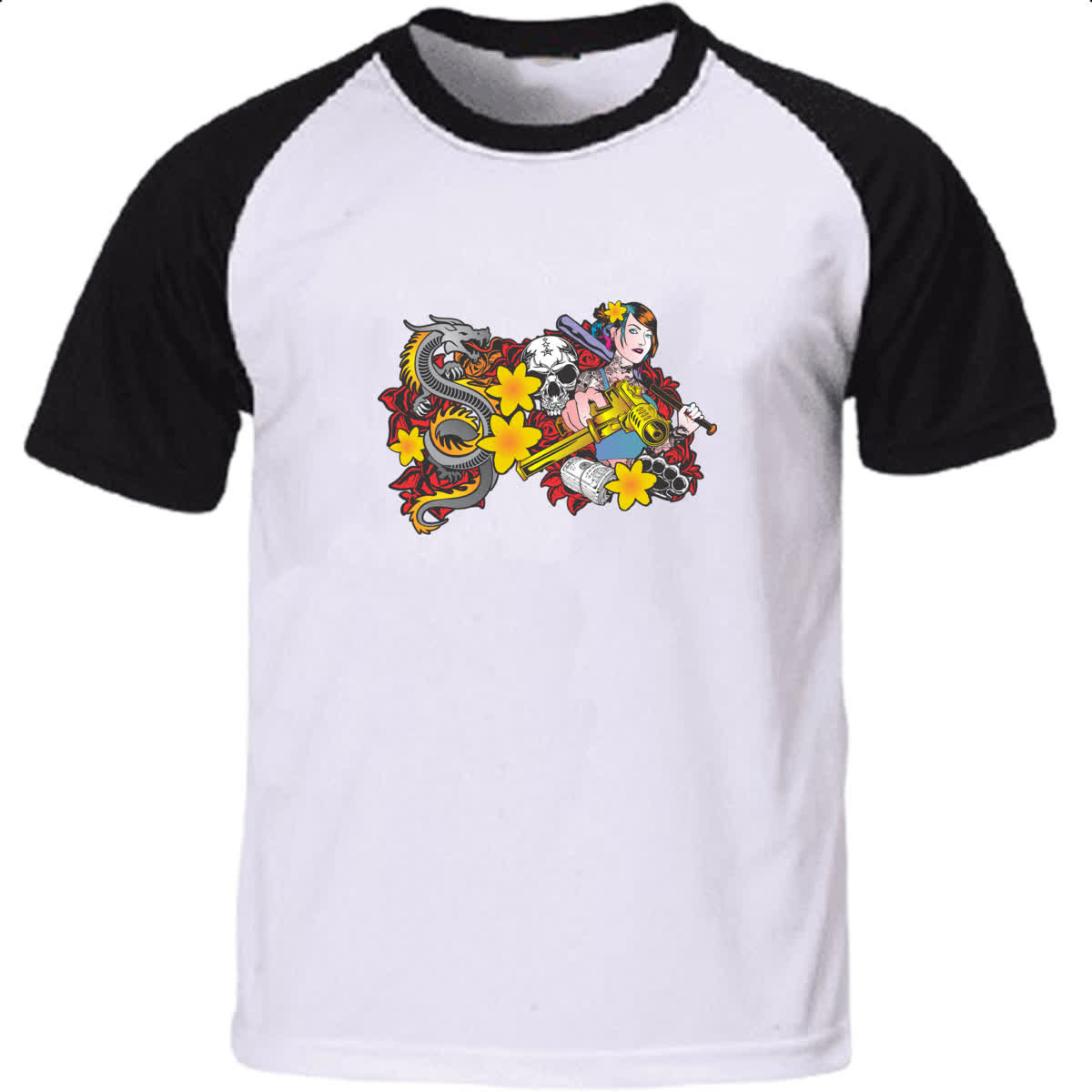 – Nossas estampas são feitas através de um processo conhecido por SUBLIMAÇÃO, onde o desenho é transferido para a camiseta através de calor, o desenho fica com um acabamento impecável, cores vivas, que não desbota e nem racham com as lavagens/tempo.