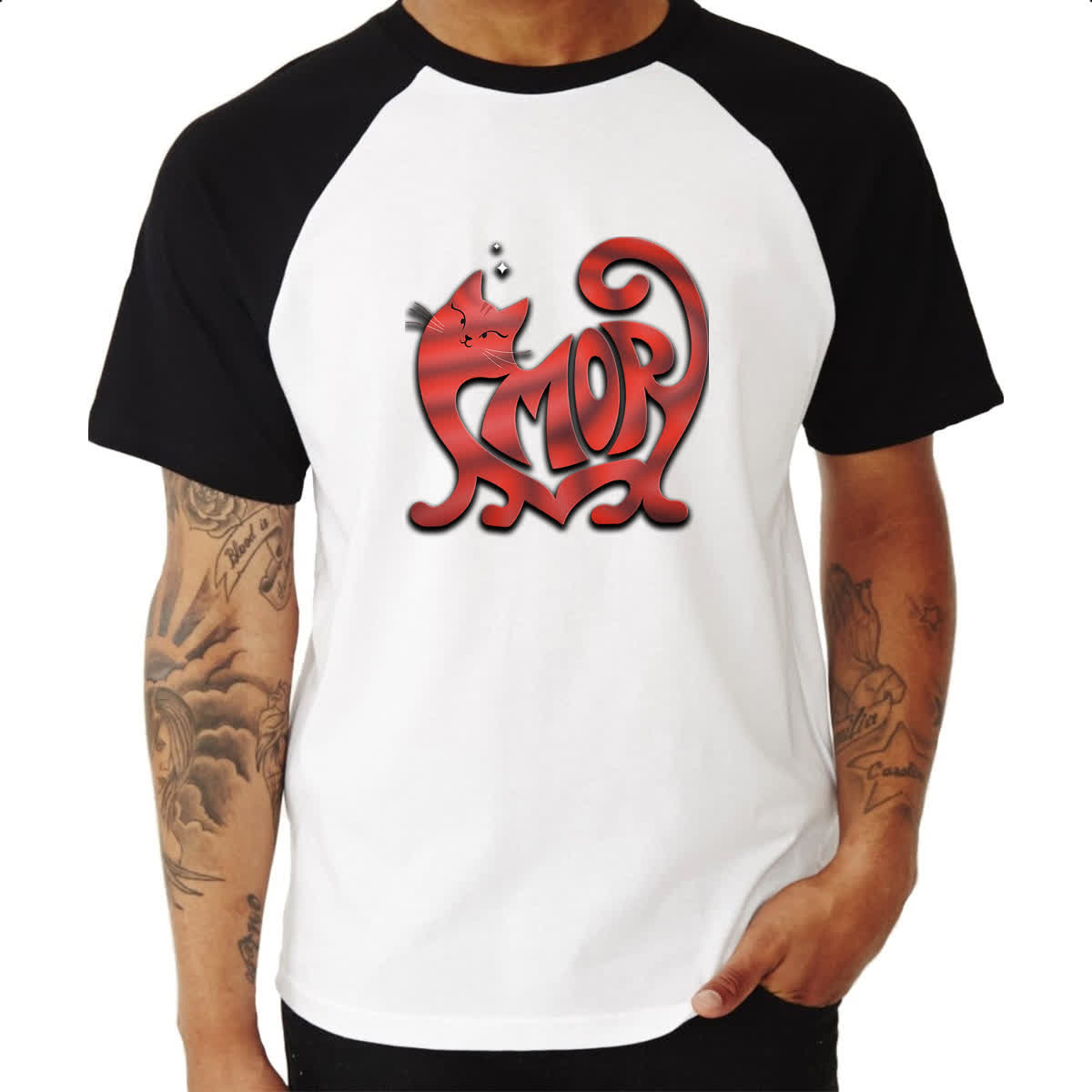 Camiseta Raglan Gato Amor