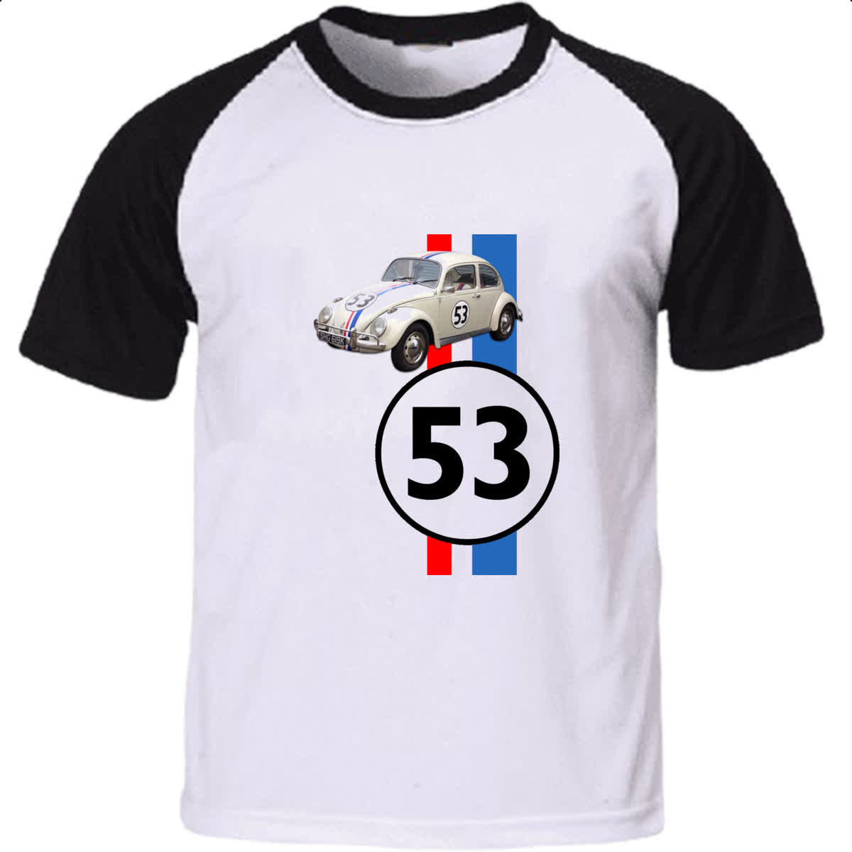 Camiseta Raglan Herbie 53 fusca falasse Logo e Carro