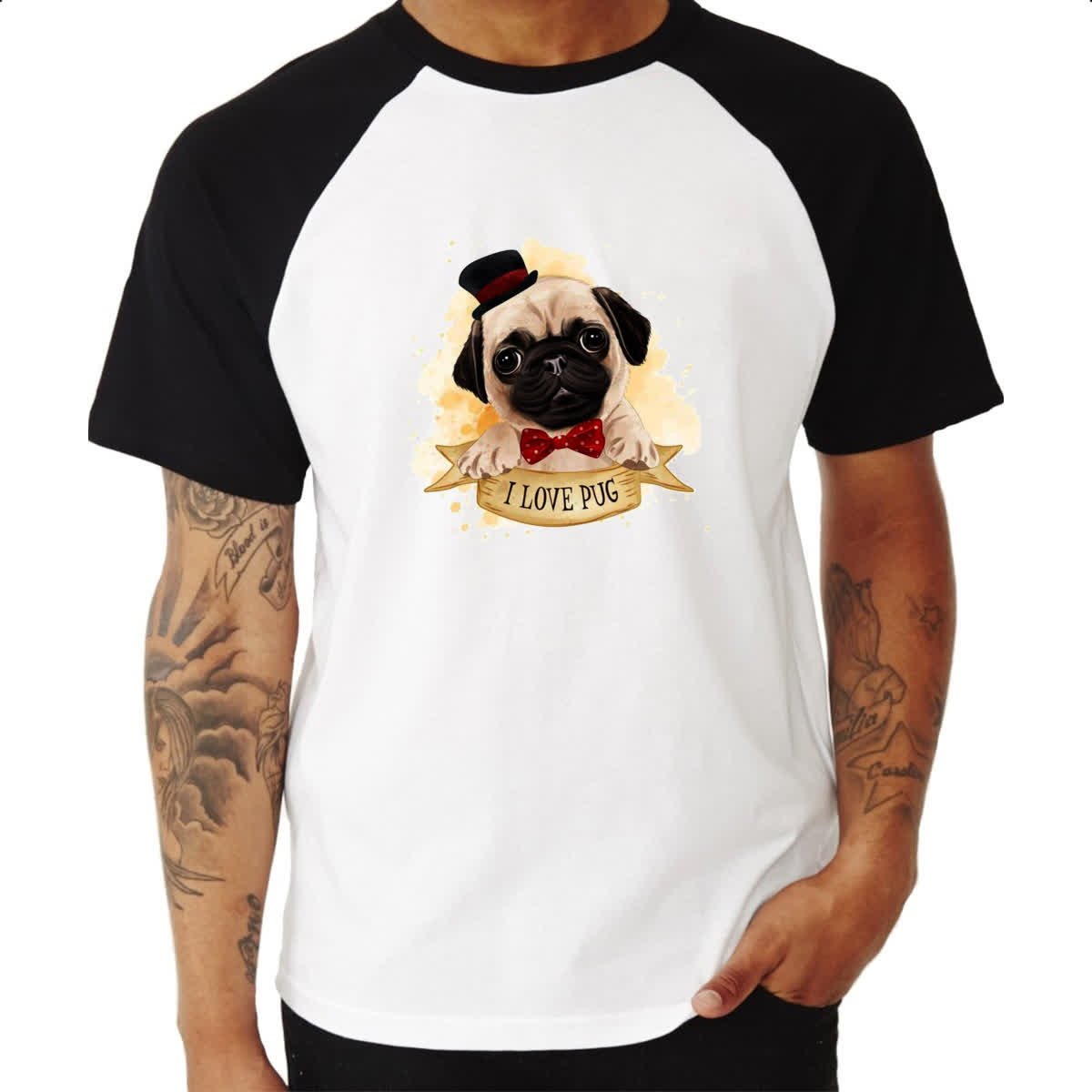 Camiseta Raglan I love pug
