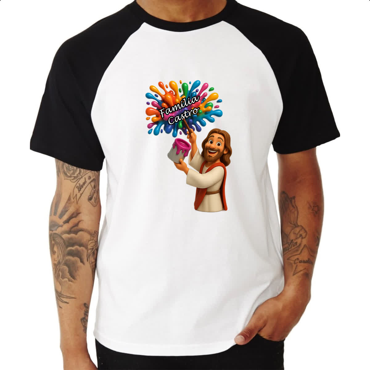 Camiseta Raglan Jesus Escrevendo Familia Castro