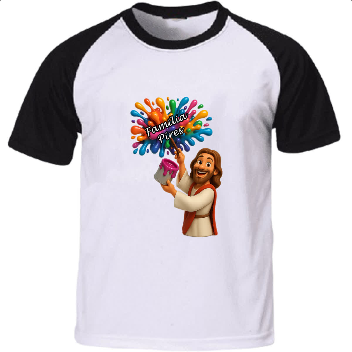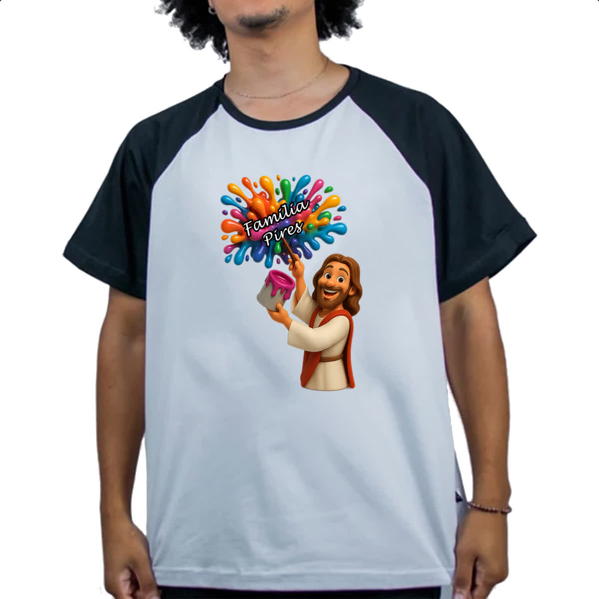 Camiseta Raglan Jesus Escrevendo Familia Pires