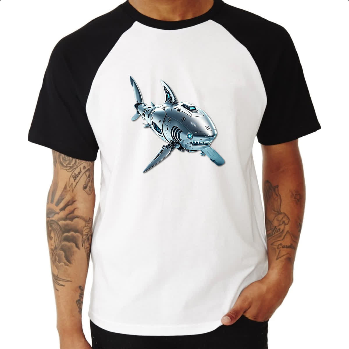 Camiseta Raglan Megalodon robo