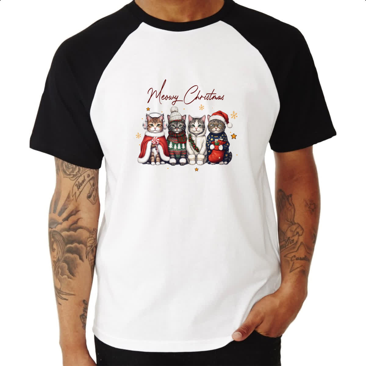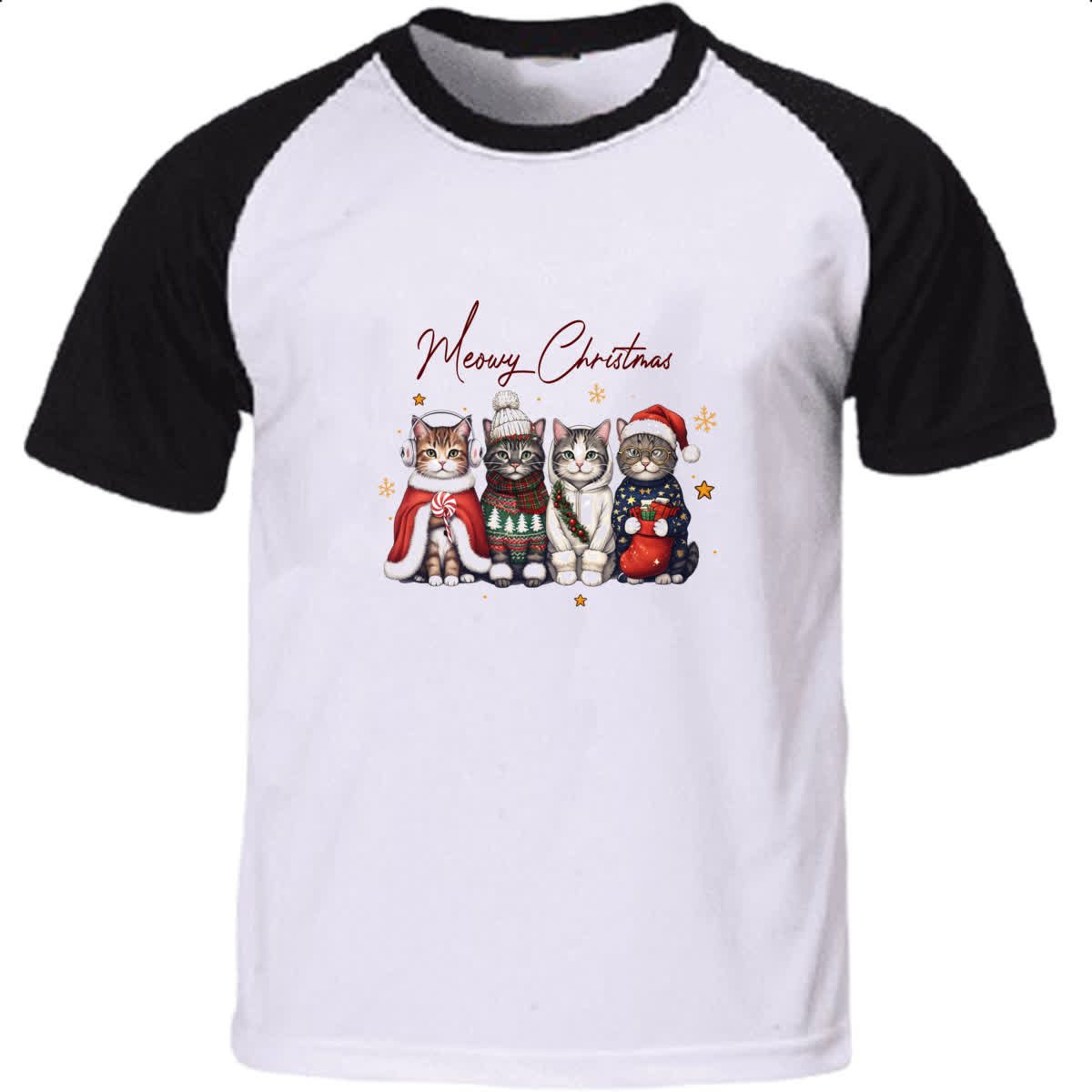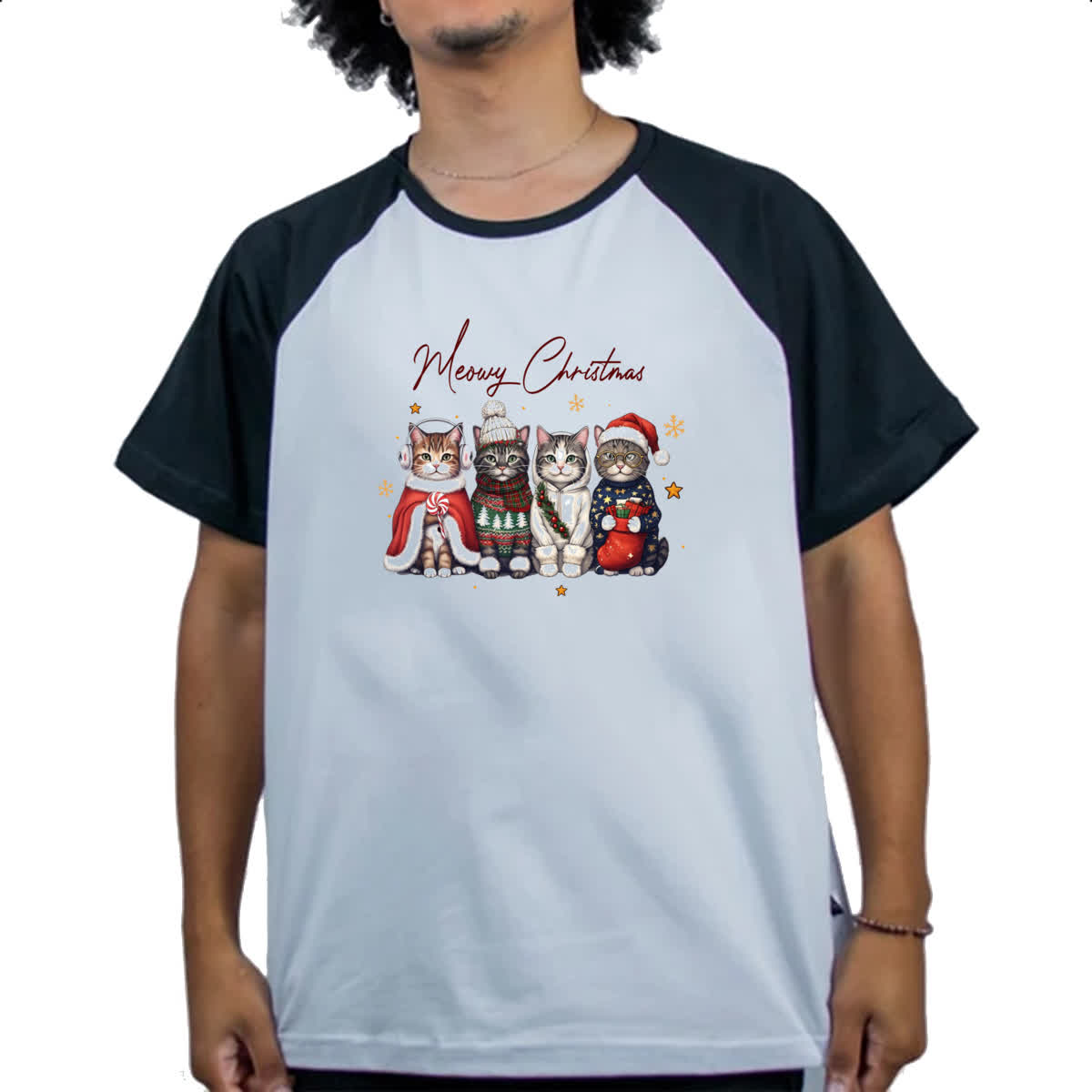 Camiseta Raglan Meowy Gatos Natal