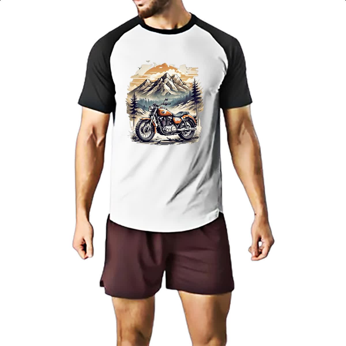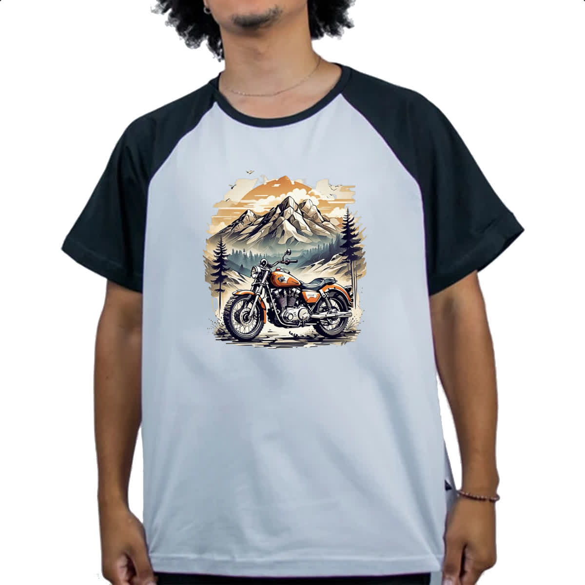 Camiseta Raglan Motocicleta vintage montanhas