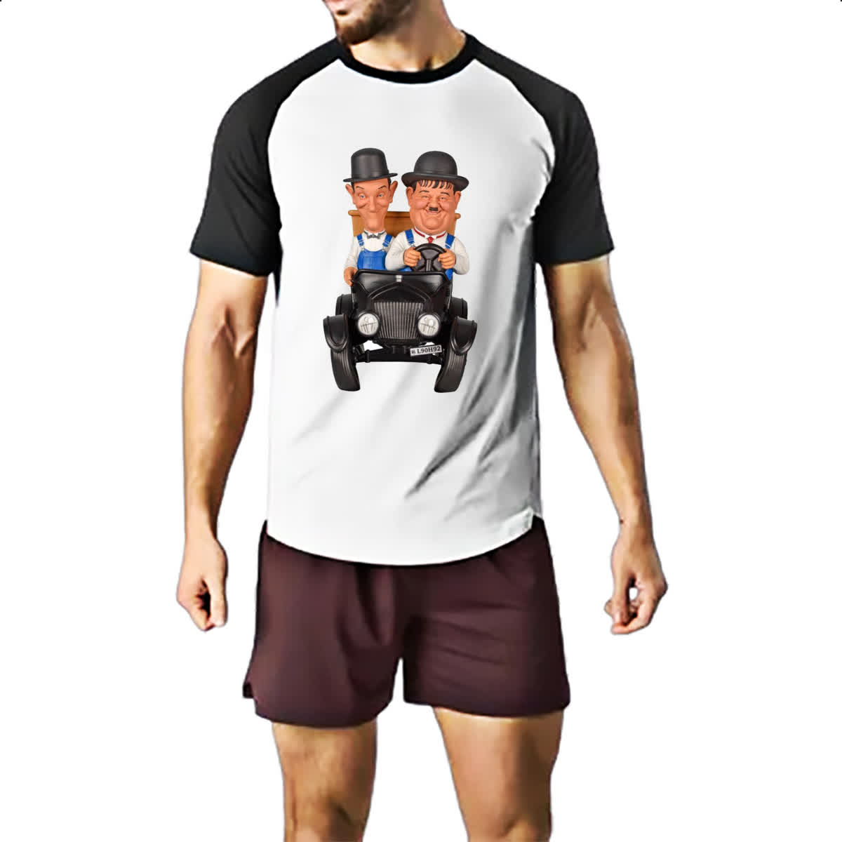 Camiseta Raglan Nostalgia O Gordo e o Magro Calhambeque