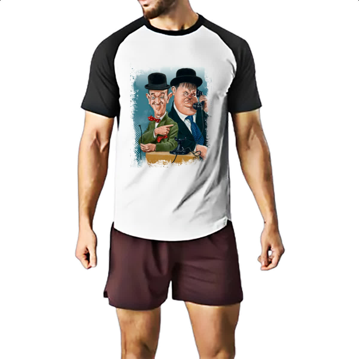 Camiseta Raglan Nostalgia O Gordo e o Magro Caricatura