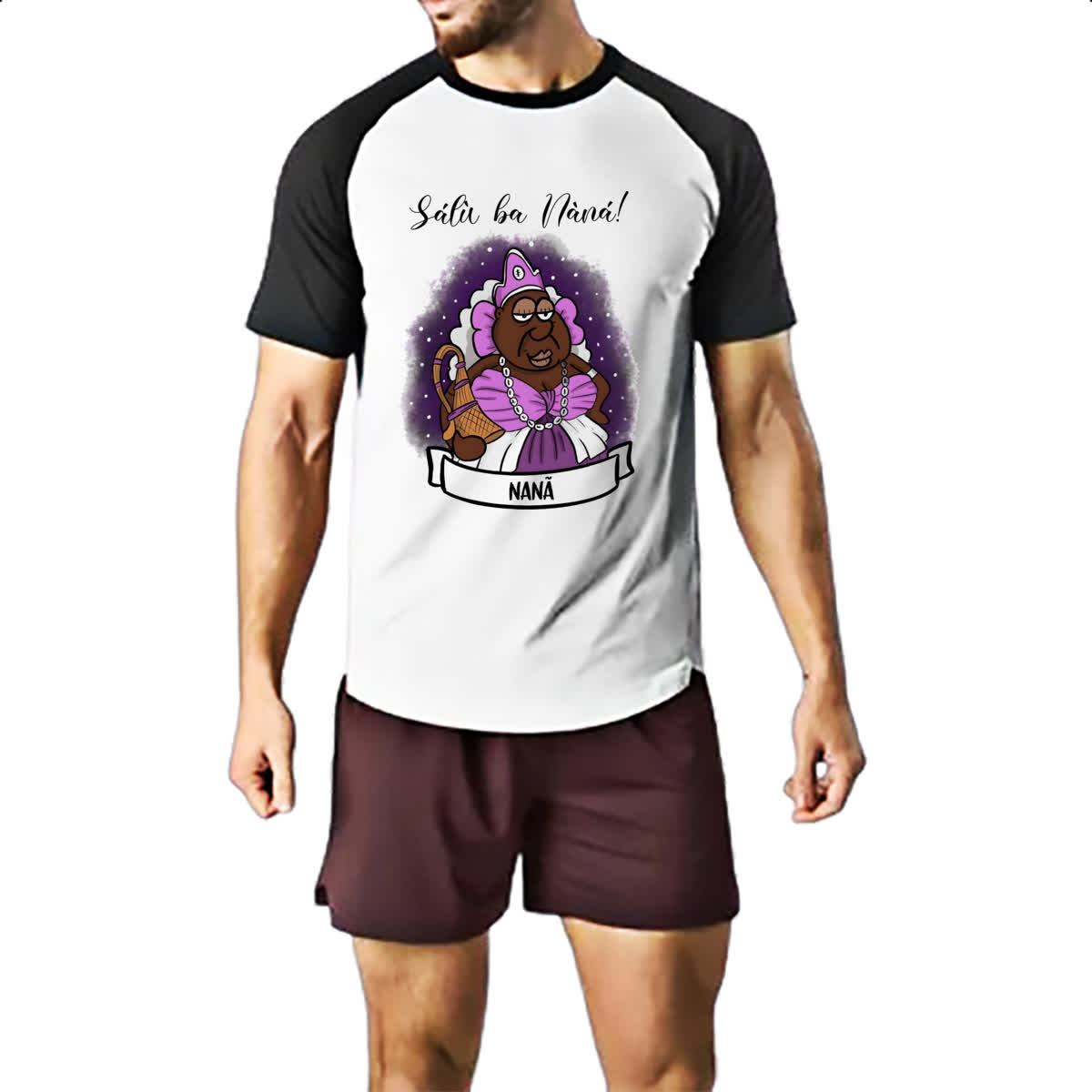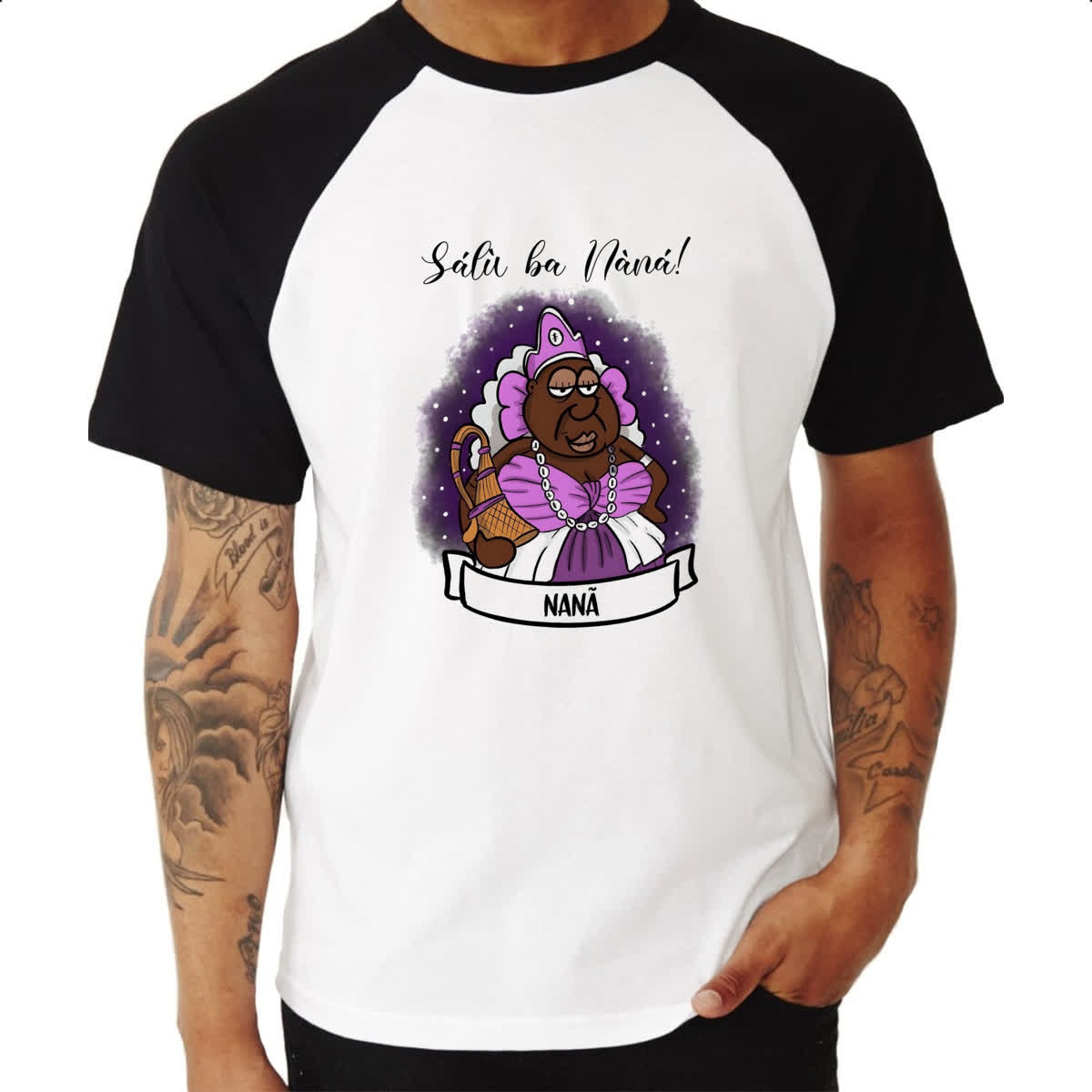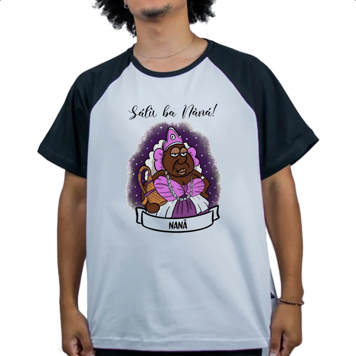 Camiseta Raglan Orixas Cartoon Nana Salu ha nana