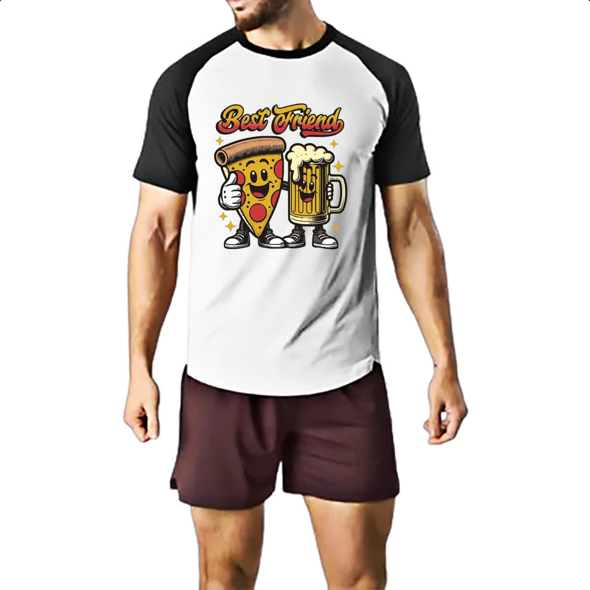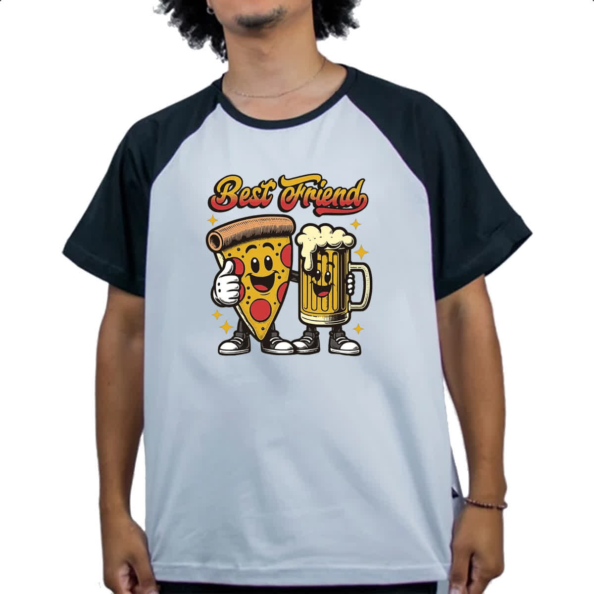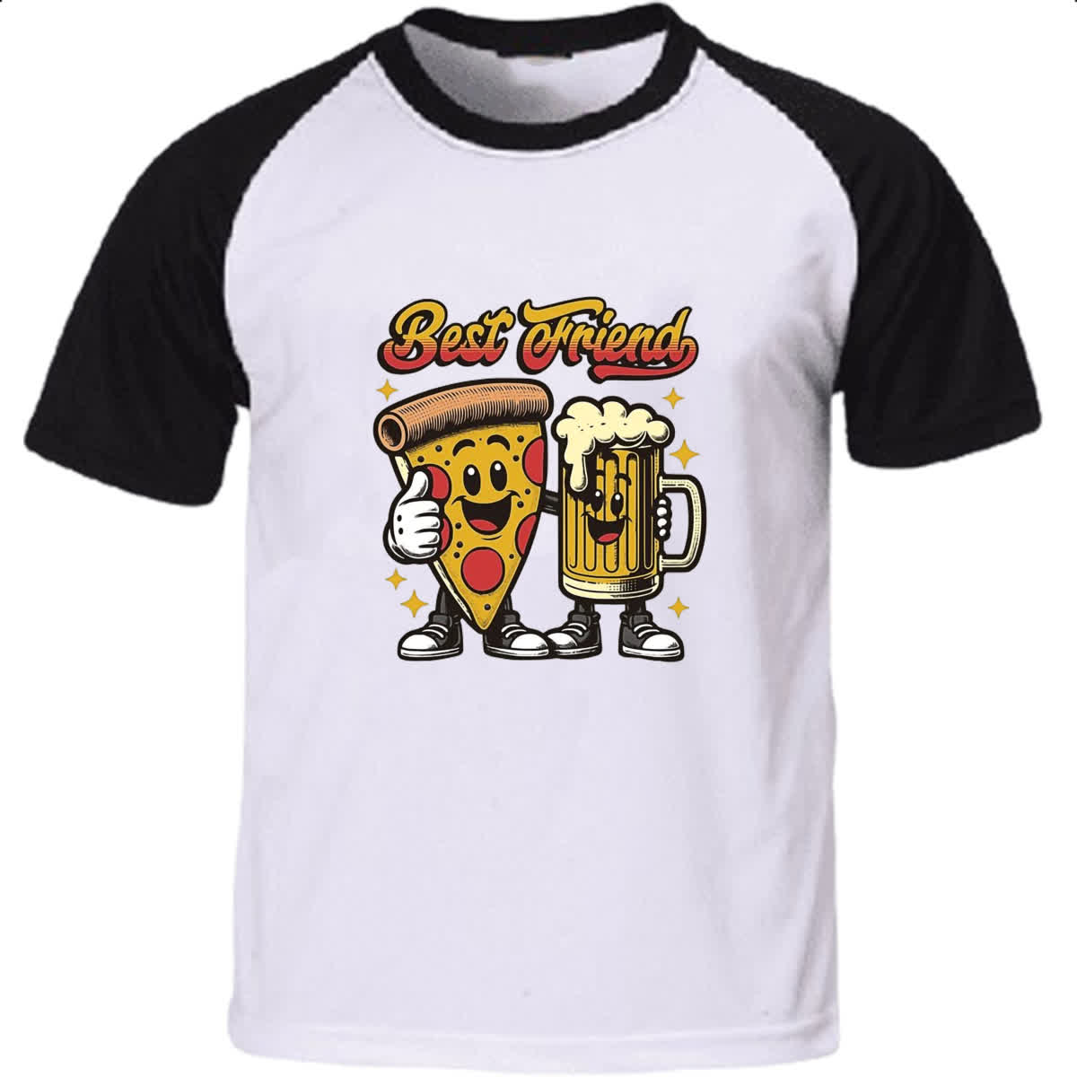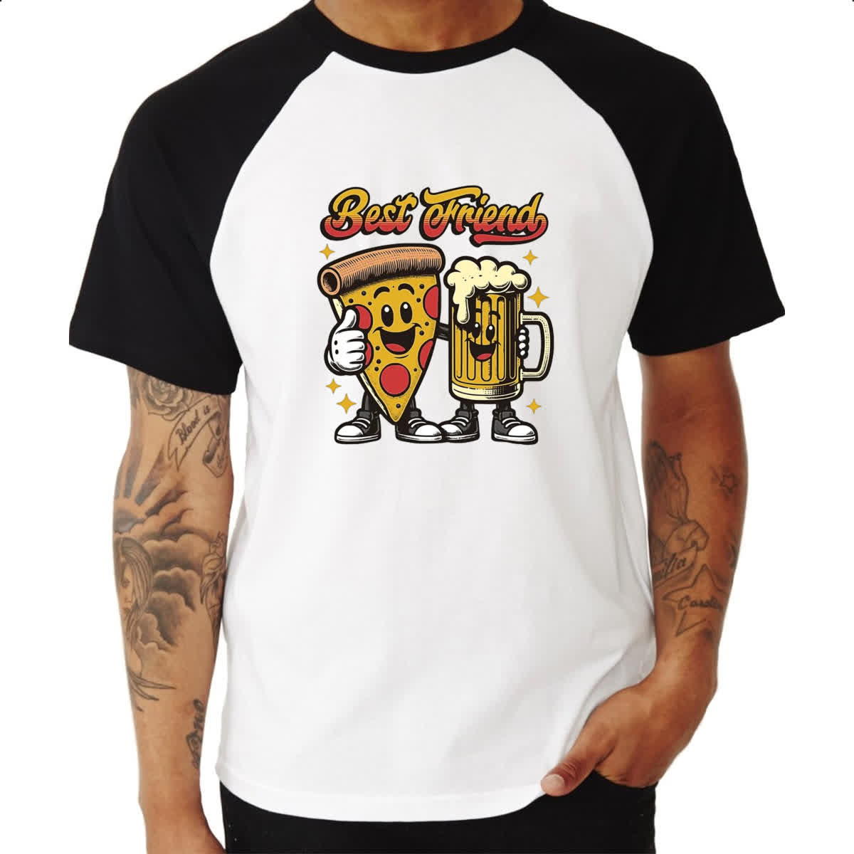 Camiseta Raglan Pizza Cerveja melhores amigos