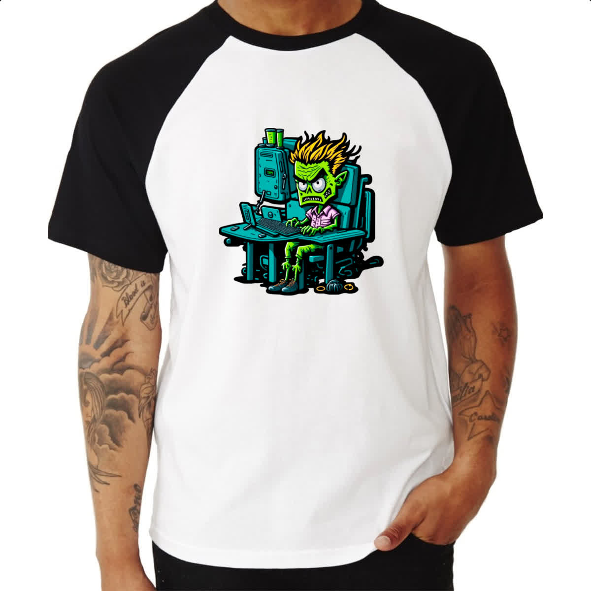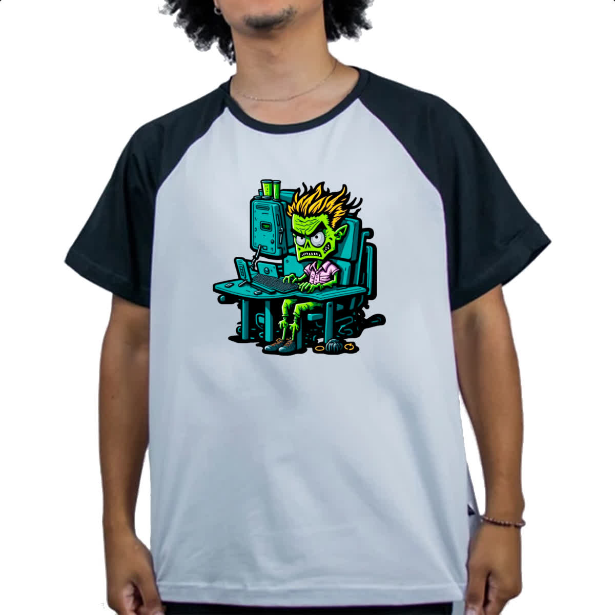 Camiseta Raglan Programador Escravo Zumbi