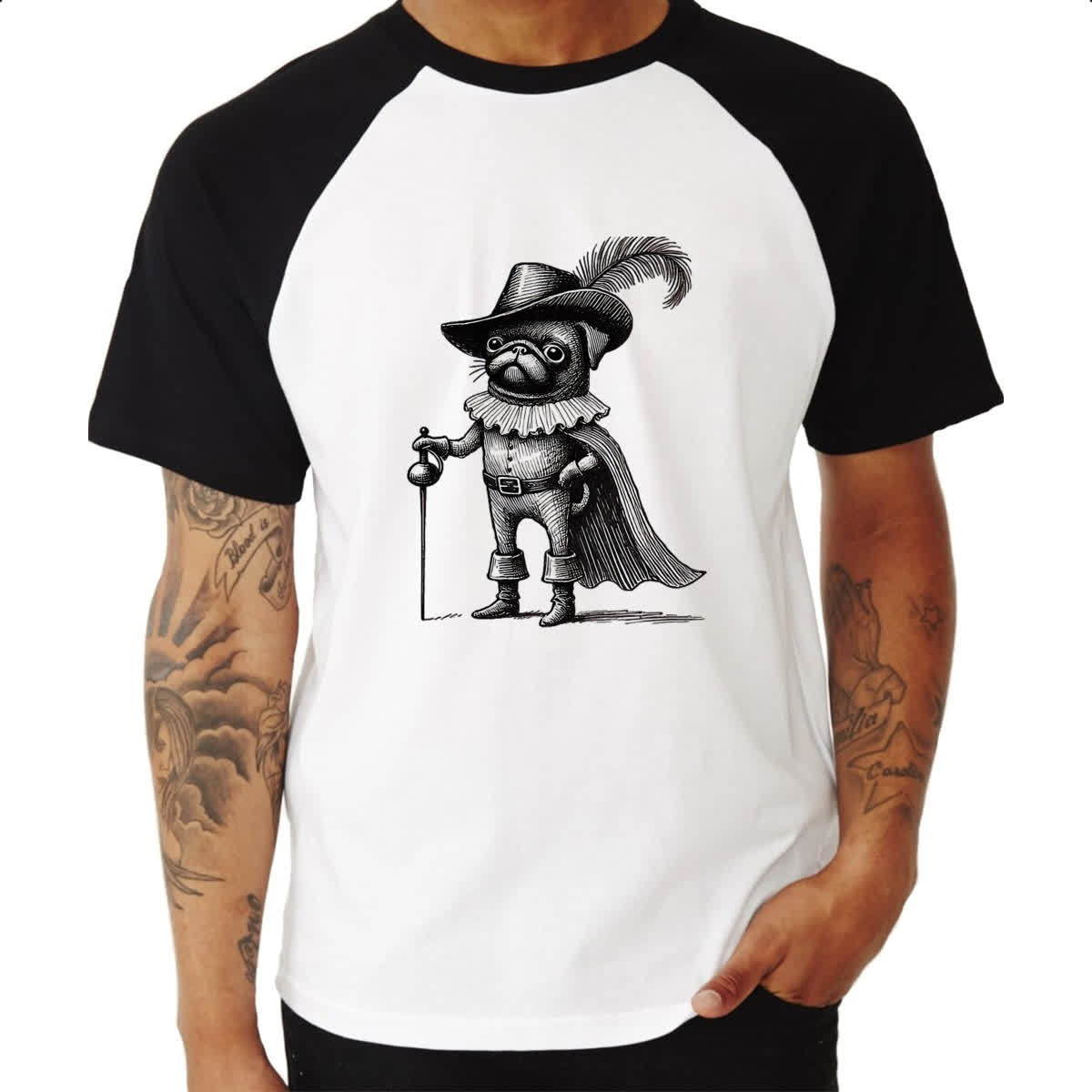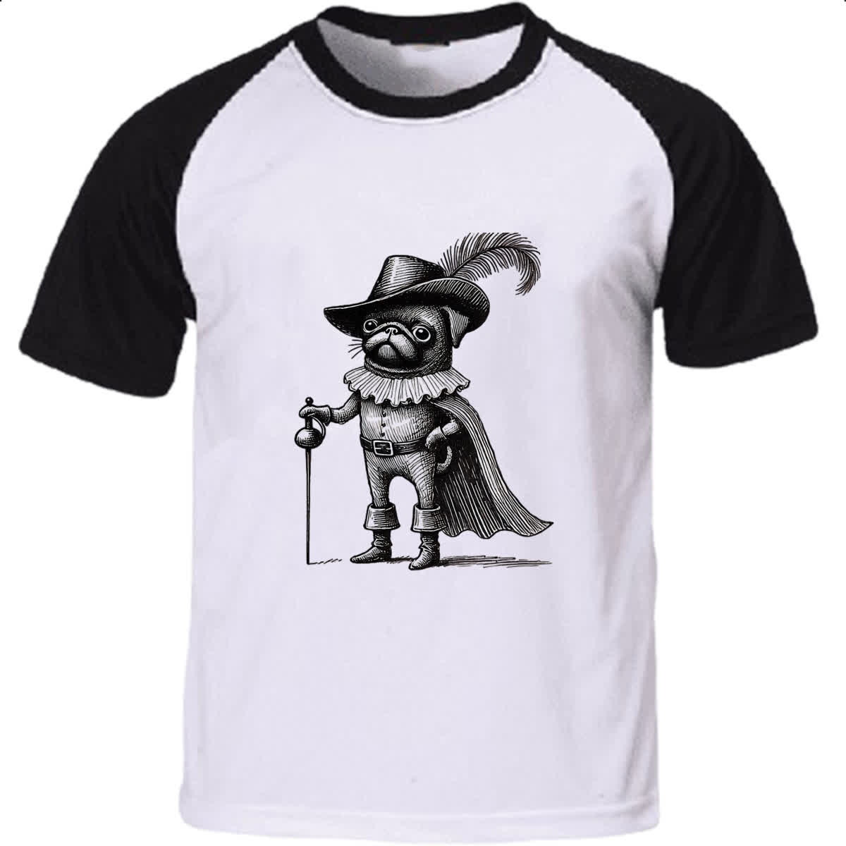Camiseta Raglan Pug Mosqueteiro