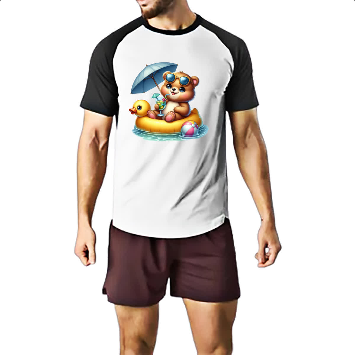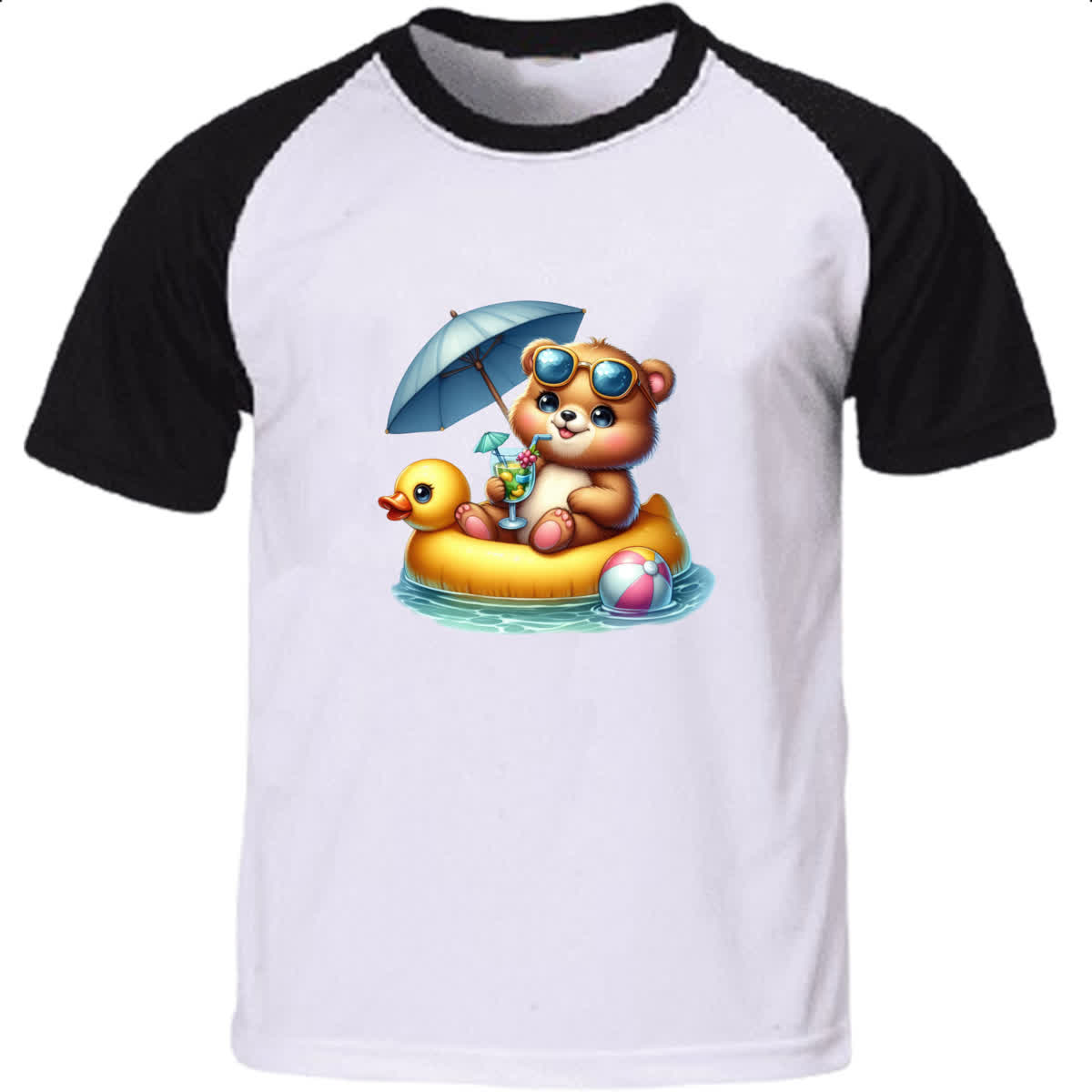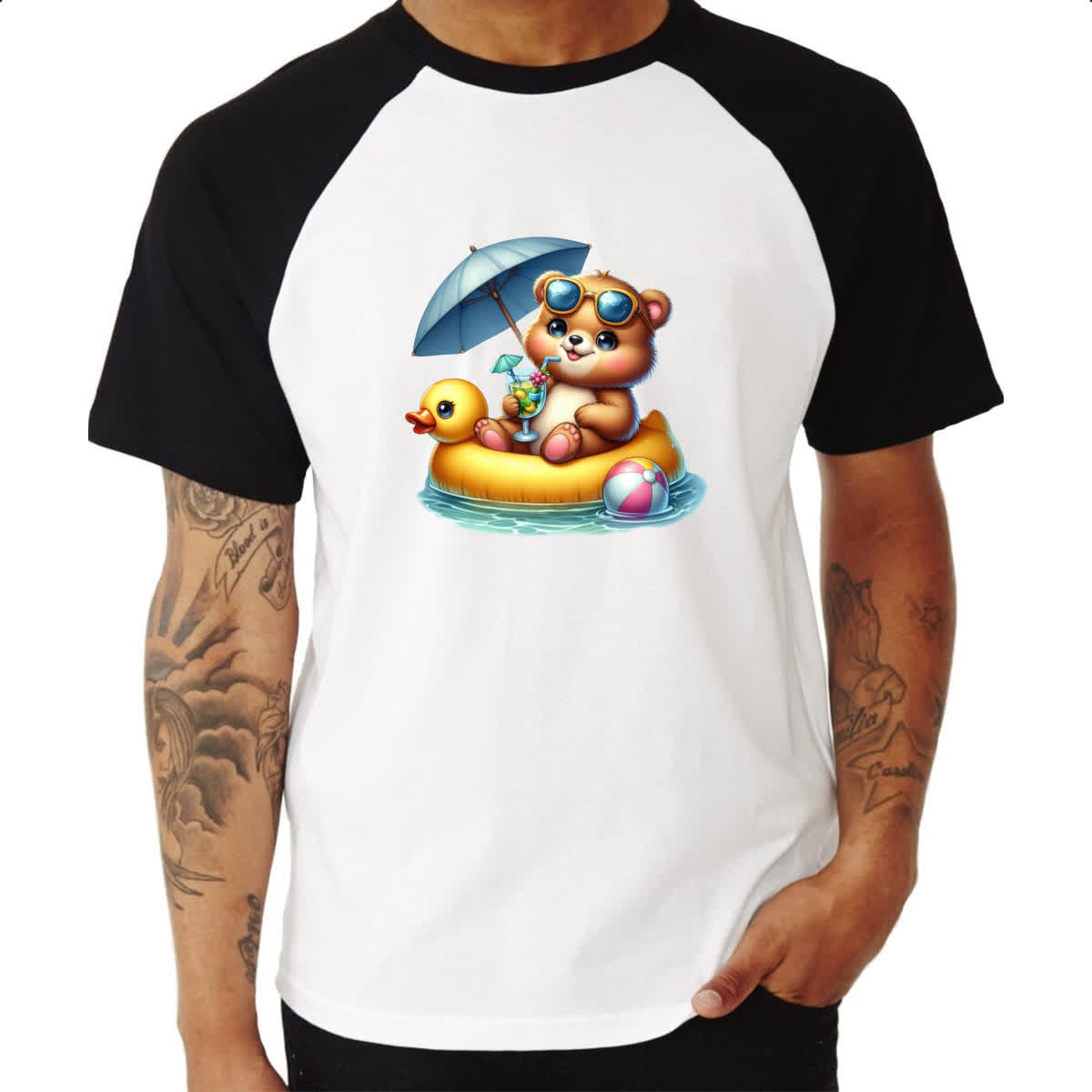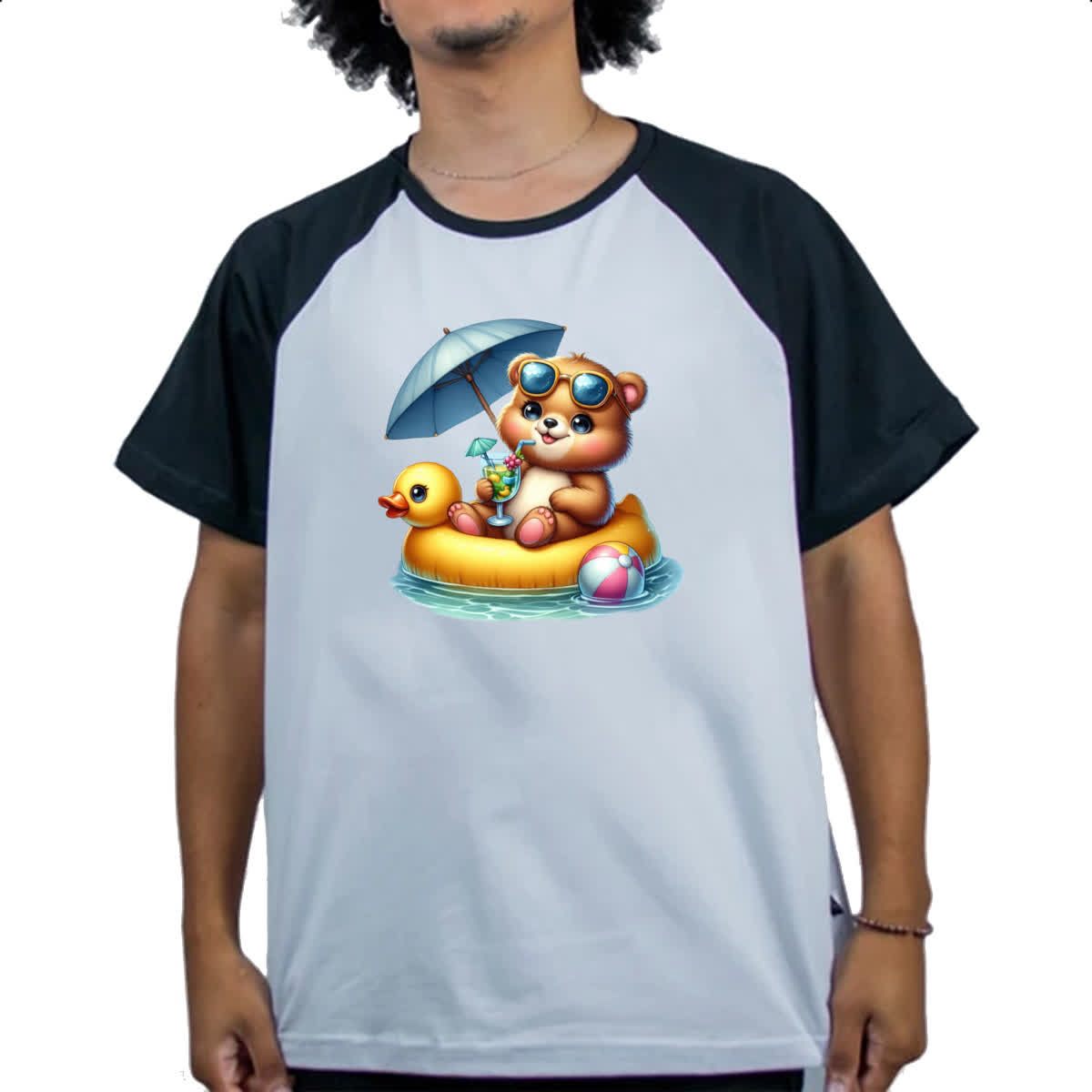 Camiseta Raglan Urso na boia
