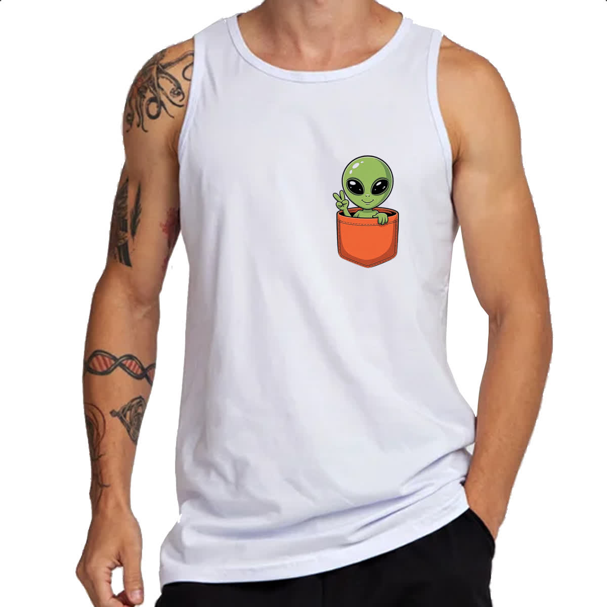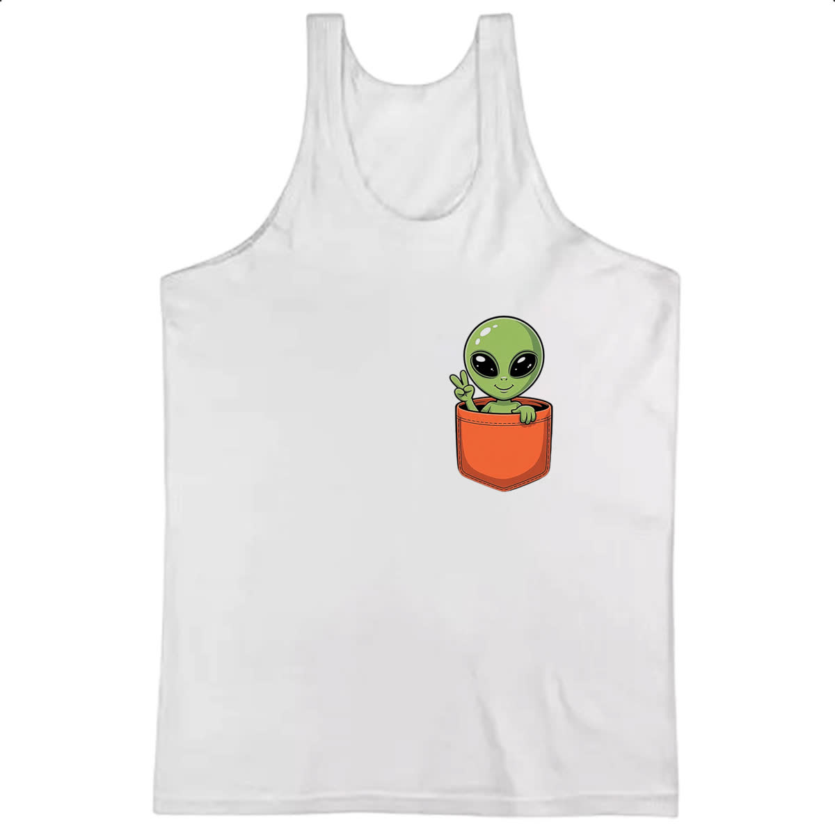 Camiseta Regata Alien no bolso laranja