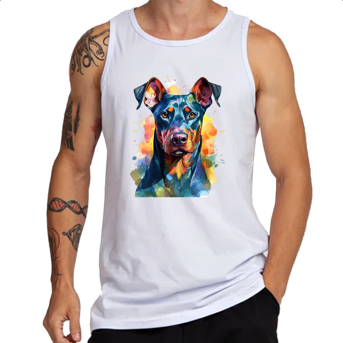 Camiseta Regata Doberman Watercolor Arte