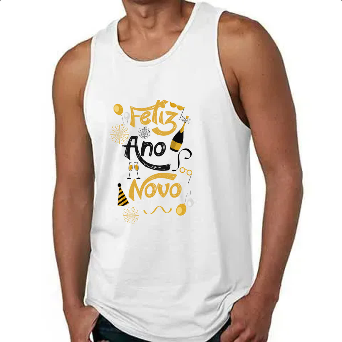 Camiseta Regata Feliz ano novo elementos