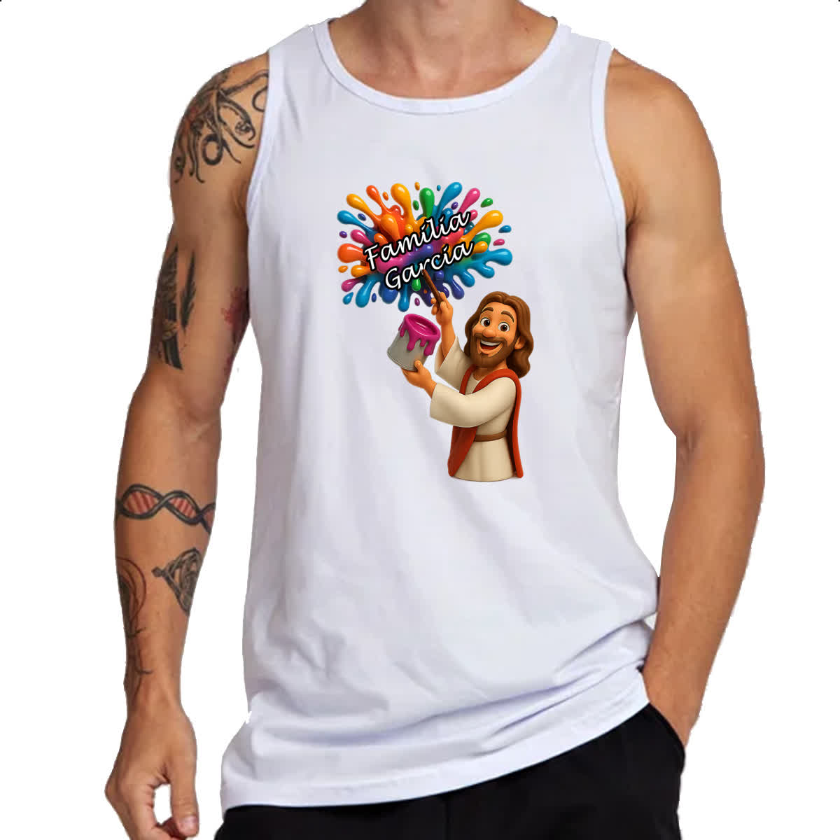 Camiseta Regata Jesus Escrevendo Familia Garcia