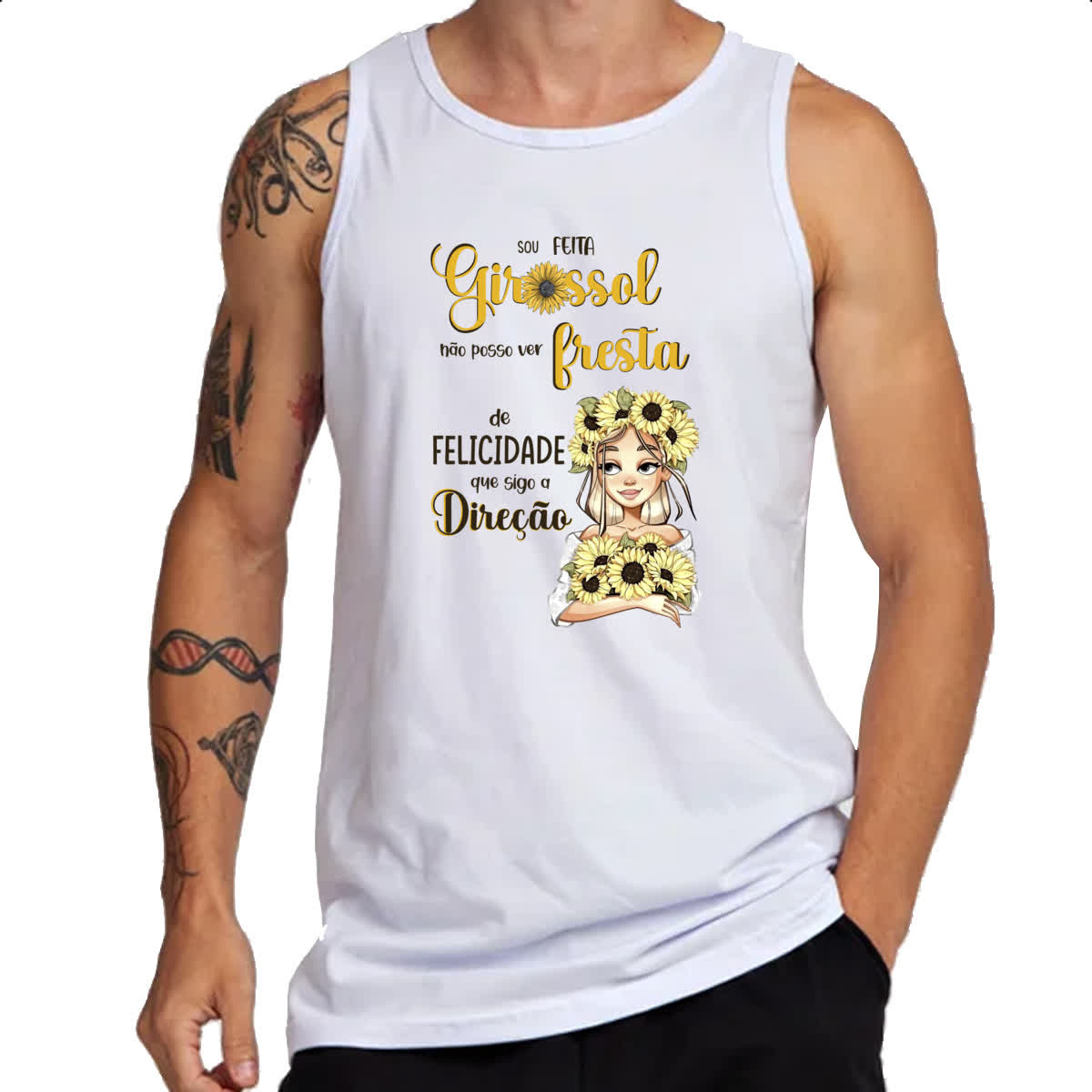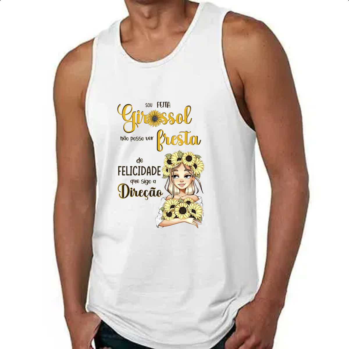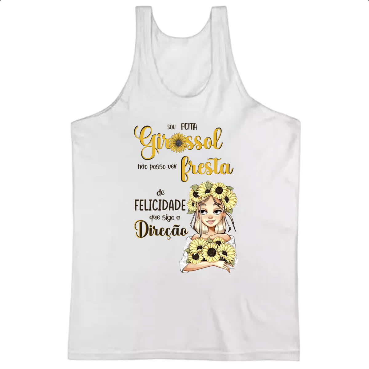 Camiseta Regata Mulher feita girassol felicidade