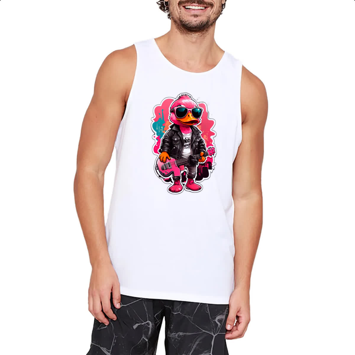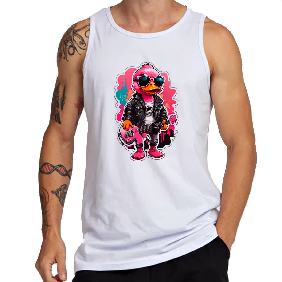 Camiseta Regata Patinho Pink Guitarrista Rock