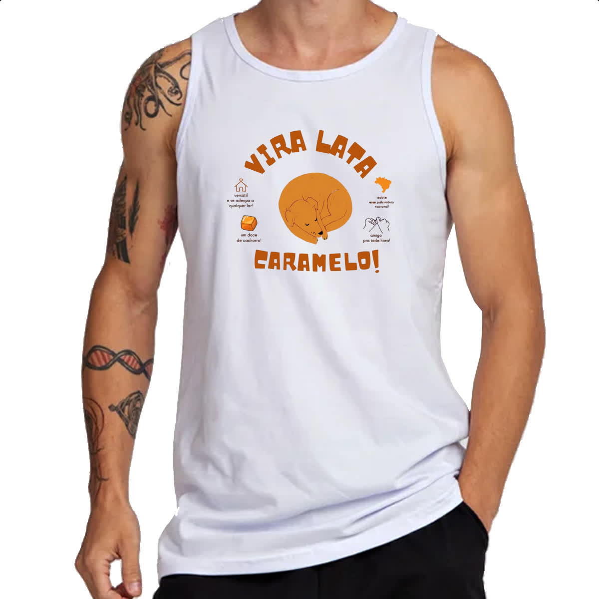 – Nossas camisetas são produzidas com tecido de 100% Poliéster.