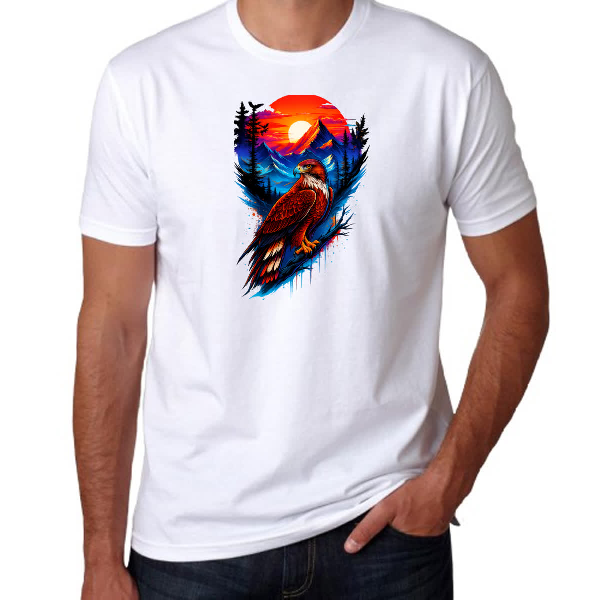 Camiseta Unissex Aguia montanhas landscape art