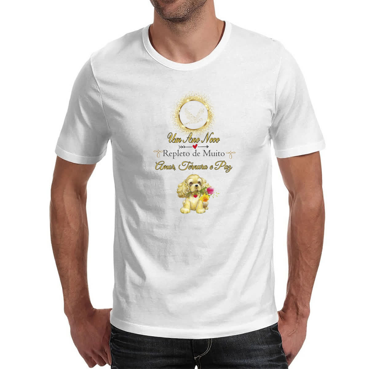 Camiseta Unissex Ano Novo Cachorro Fofo