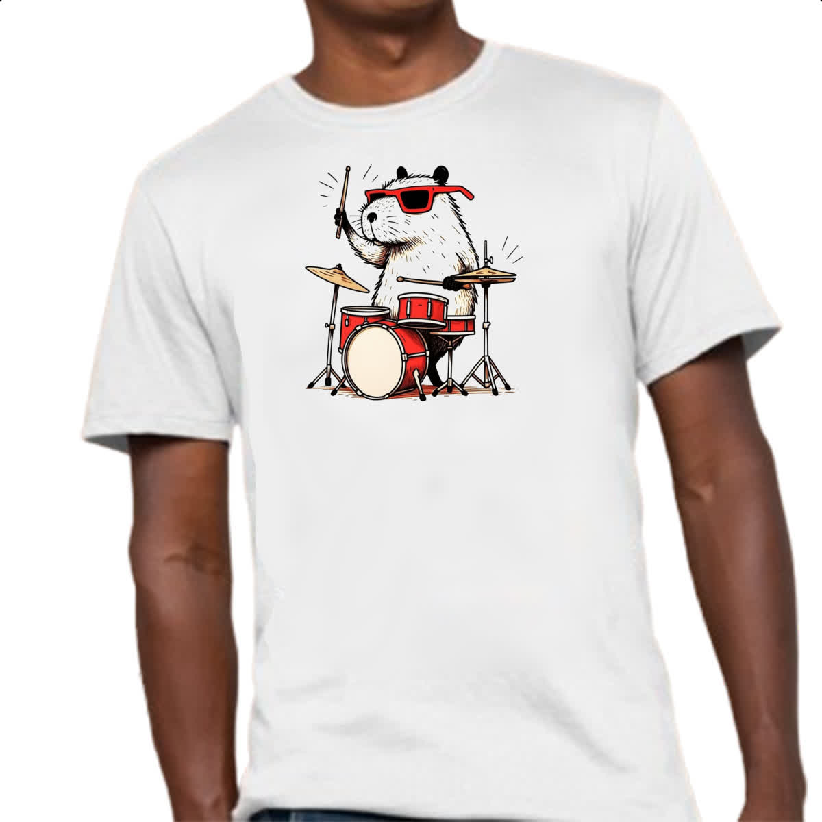 – Nossas camisetas são produzidas com tecido de 100% Poliéster.