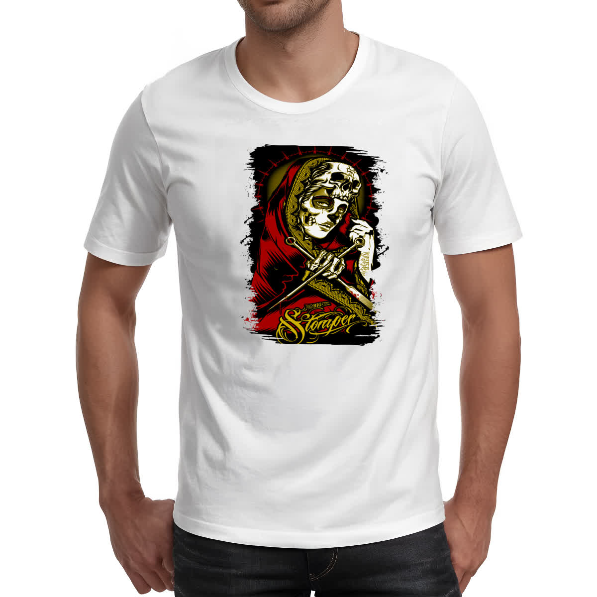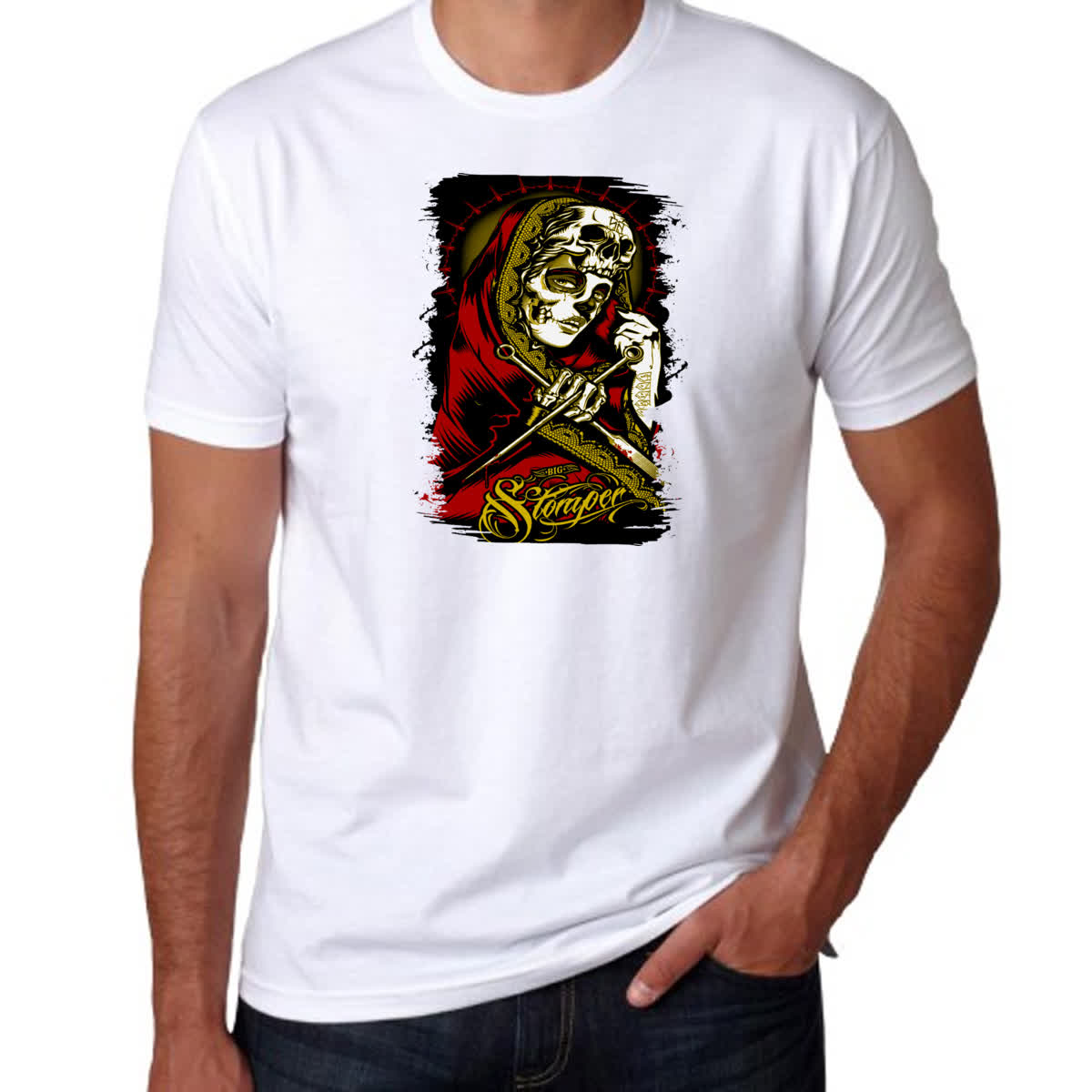 – Nossas estampas são feitas através de um processo conhecido por SUBLIMAÇÃO, onde o desenho é transferido para a camiseta através de calor, o desenho fica com um acabamento impecável, cores vivas, que não desbota e nem racham com as lavagens/tempo.