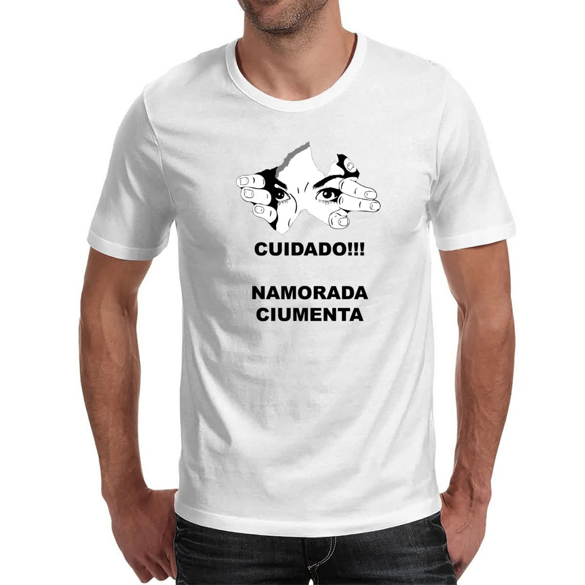 Camiseta Unissex Cuidado – Namorada ciumenta olhando