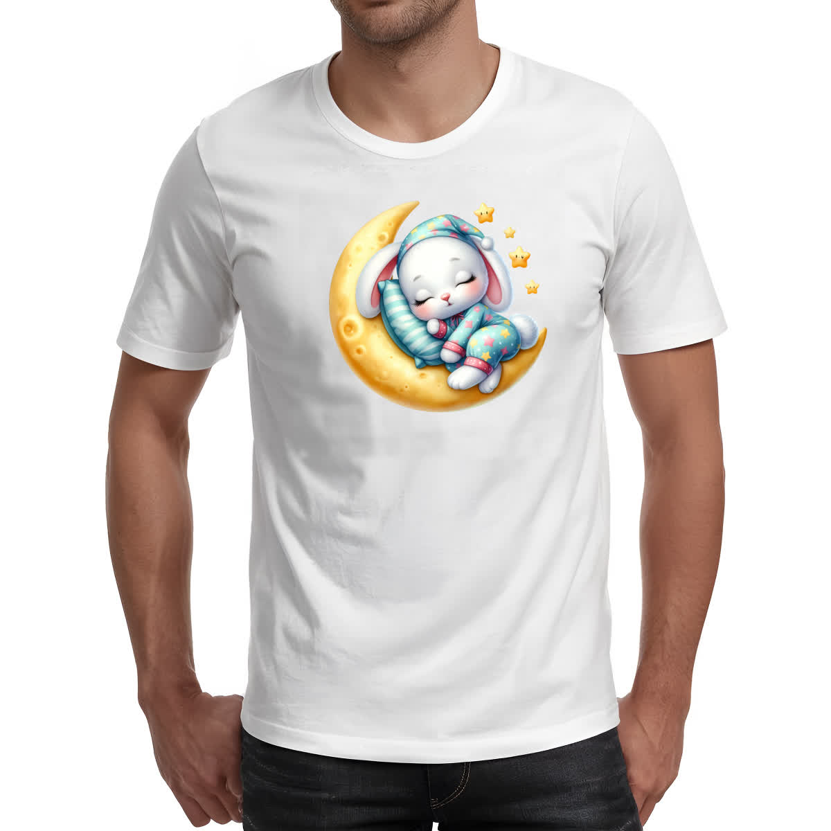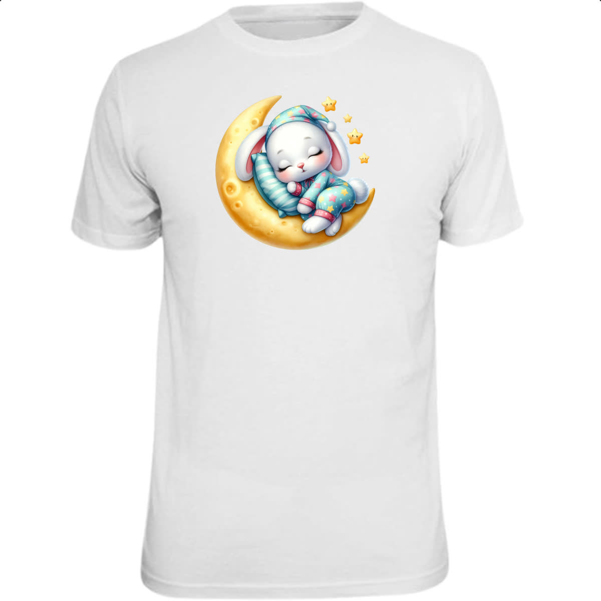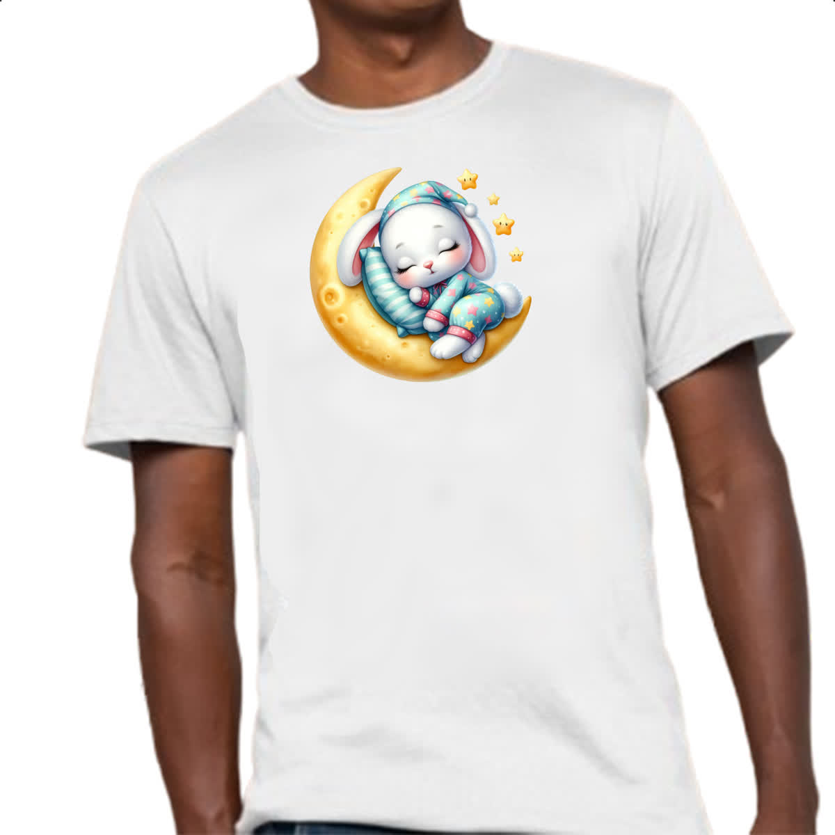 Camiseta Unissex Cute Coelho dormindo na Lua