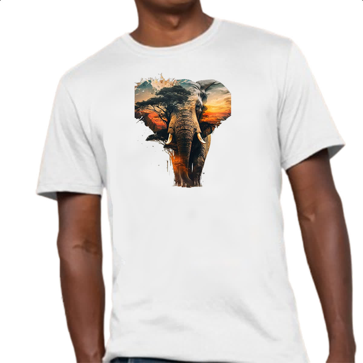 Camiseta Unissex Elefante africano paisagem corporal