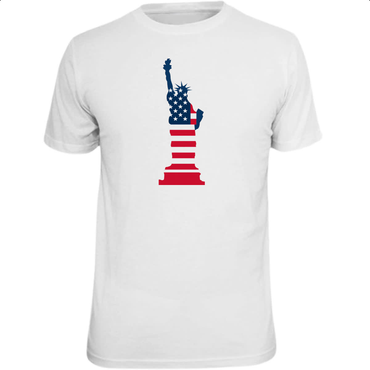 Camiseta Unissex Estatua Liberdade Silhueta Bandeira EUA