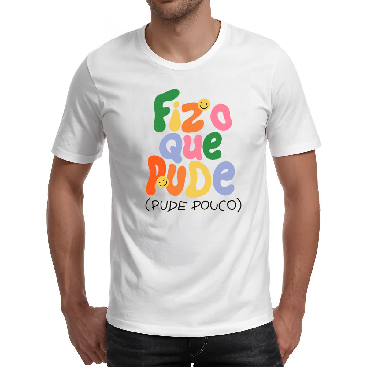 – Nossas camisetas são produzidas com tecido de 100% Poliéster.