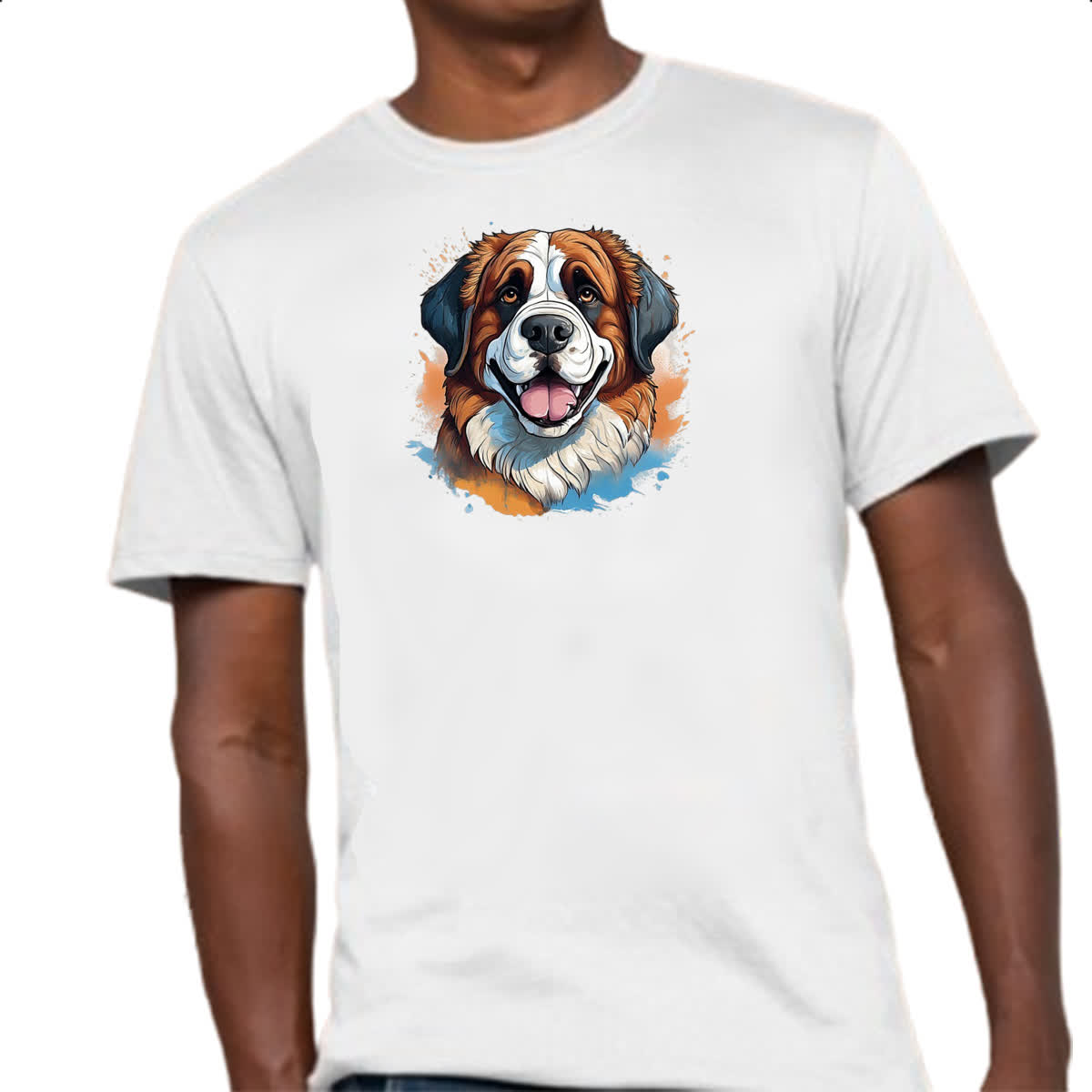 Camiseta Unissex Sao Bernado Watercolor Arte