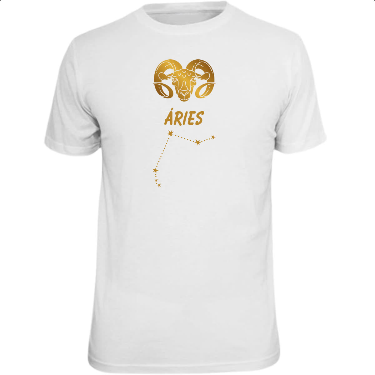 Camiseta Unissex Signo Aries Constelacao Dourada