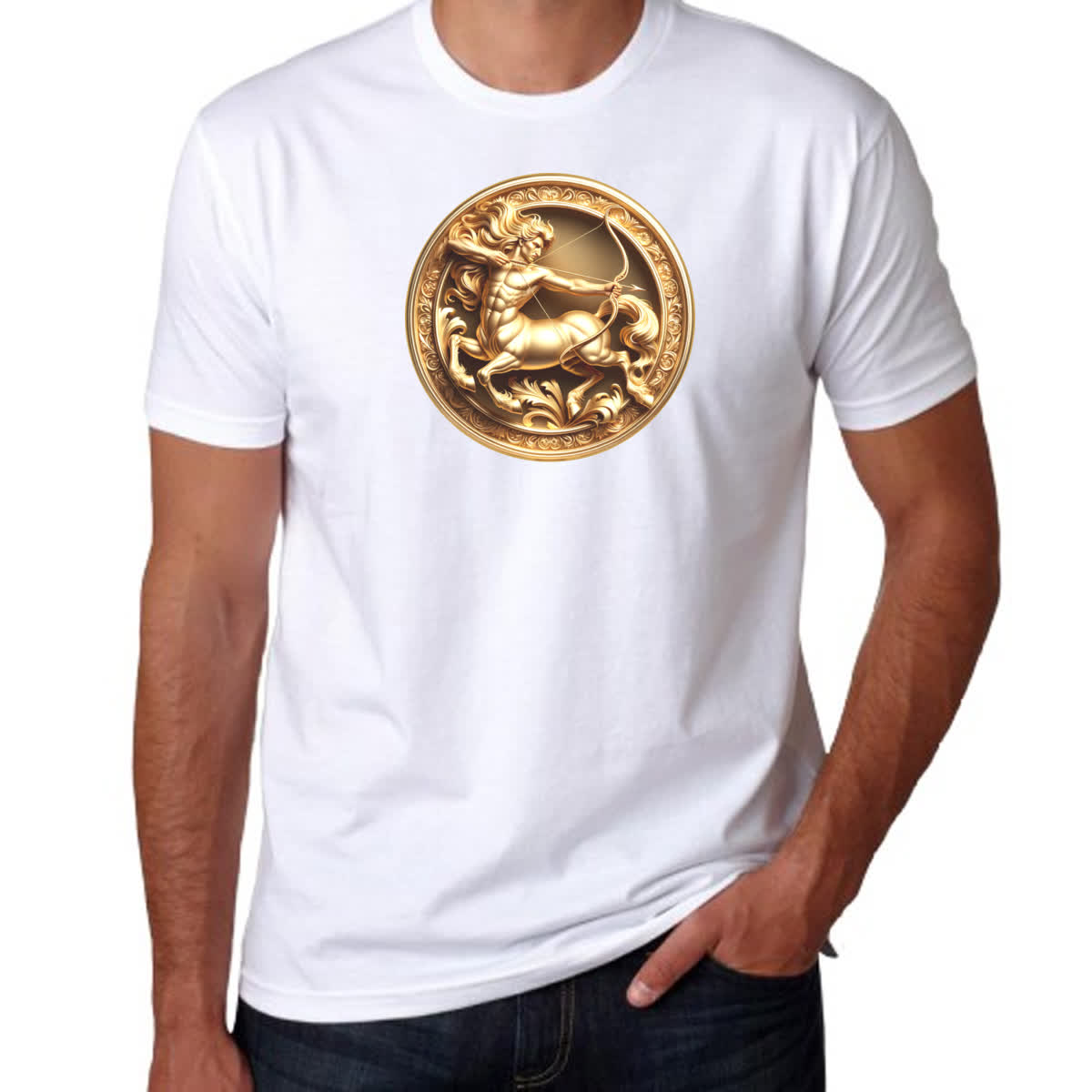 Camiseta Unissex Signo de Sagitario moeda de ouro