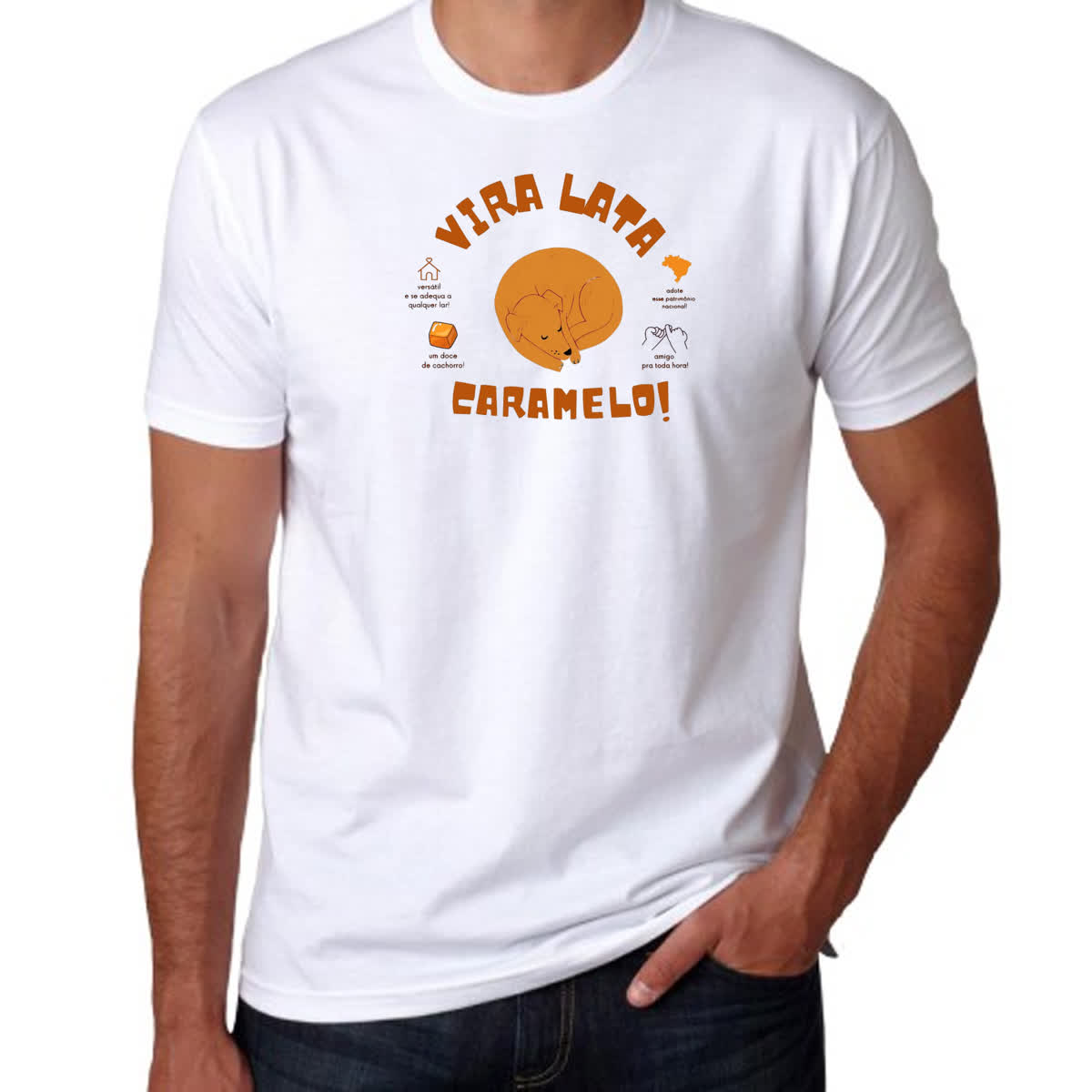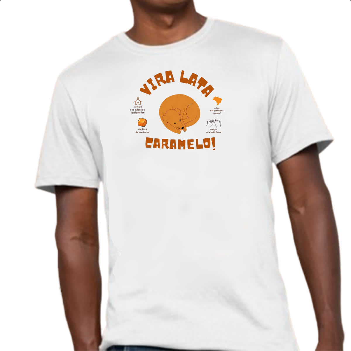 – Nossas camisetas são produzidas com tecido de 100% Poliéster.