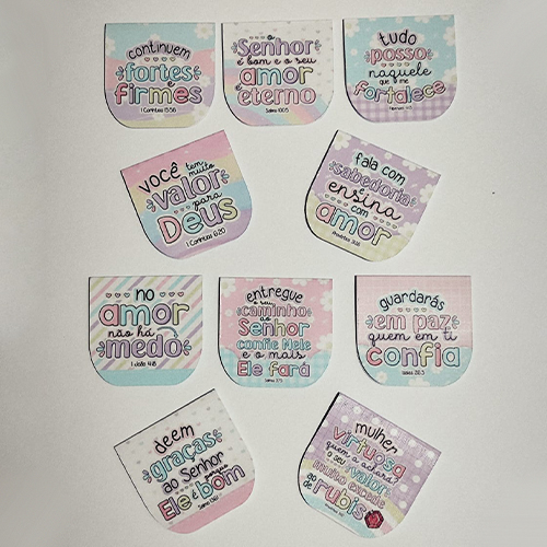 Com dimensões de 9 cm de comprimento dobrado ao meio e 4,5 cm de largura, estes marcadores magnéticos se fixam com segurança na página, evitando que se movimentem ou se percam. Os versículos fofinhos trazem mensagens inspiradoras que iluminam suas leituras e proporcionam momentos de reflexão a cada vez que você retoma a sua história favorita.
